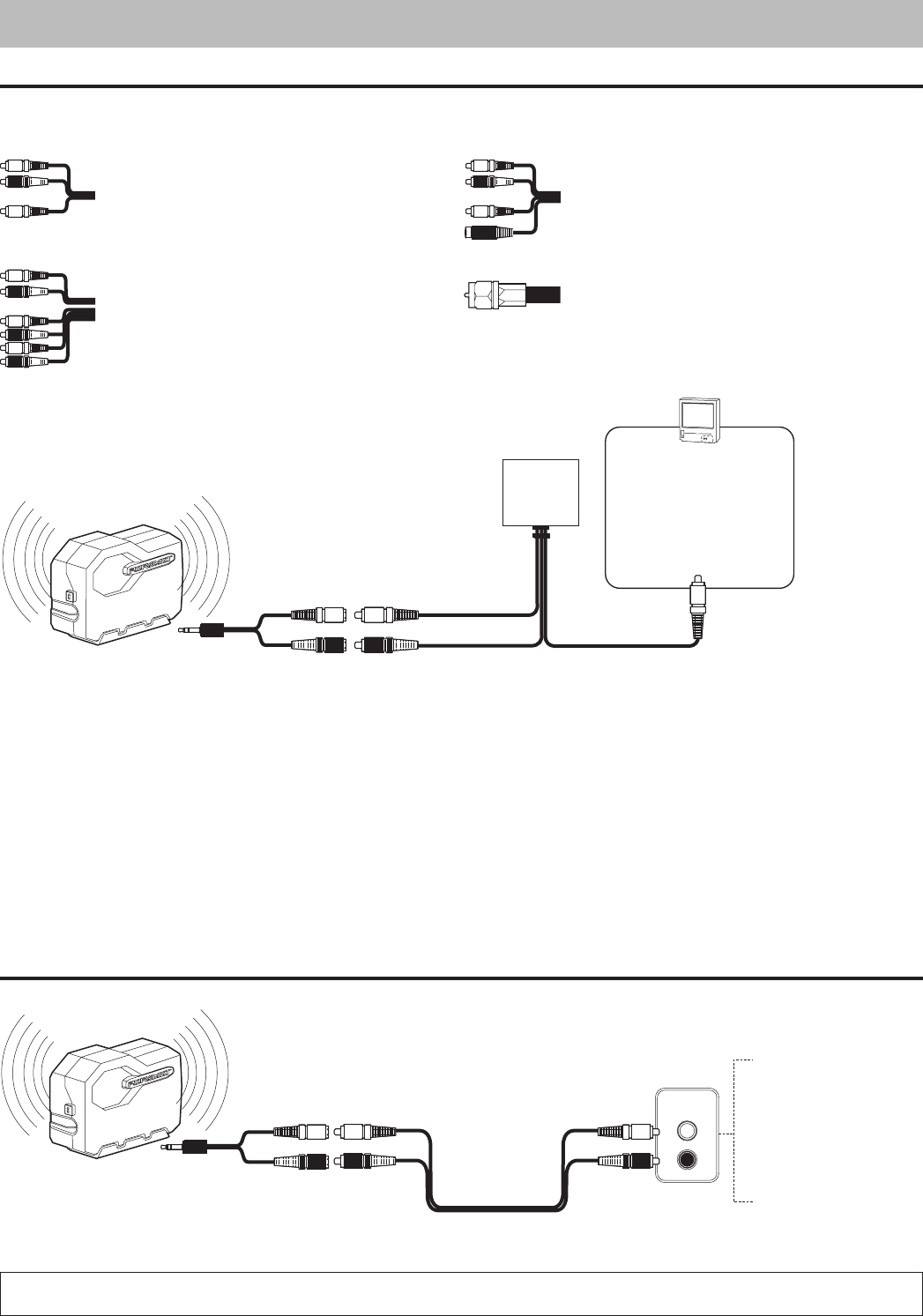 VCRs, an RCA “Y” adaptor (1 male to 2 male, not included) is needed to send