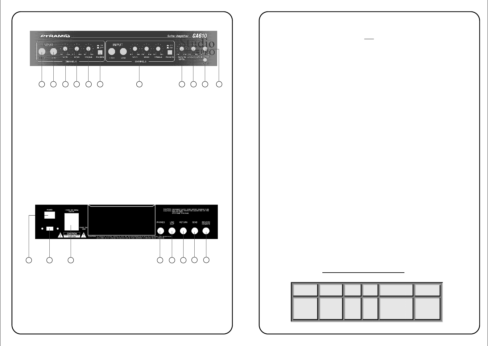 Pyramid Car Audio Musical Instrument Amplifier Ga610 Users Manual GA610˵Ã÷Êé