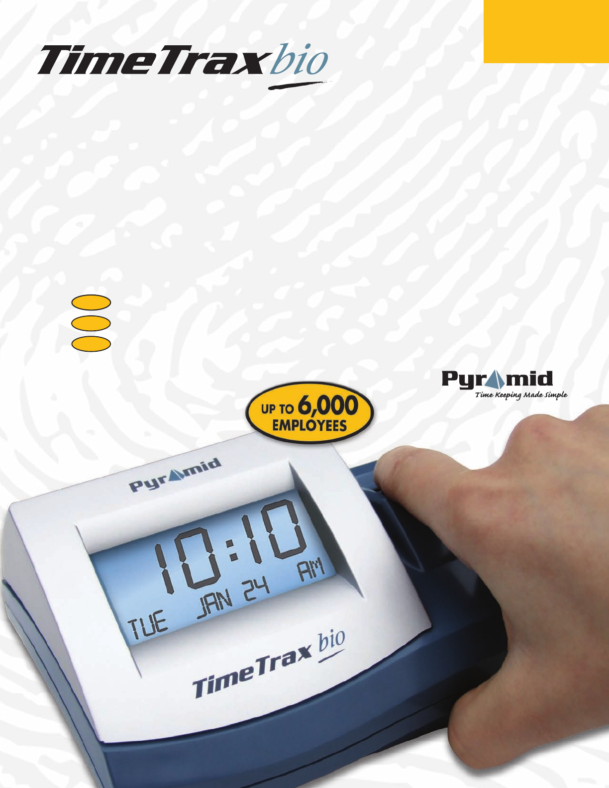 out from any Pyramid TimeTrax terminal with the scan of a finger. TimeTrax Bio Ethernet eliminates