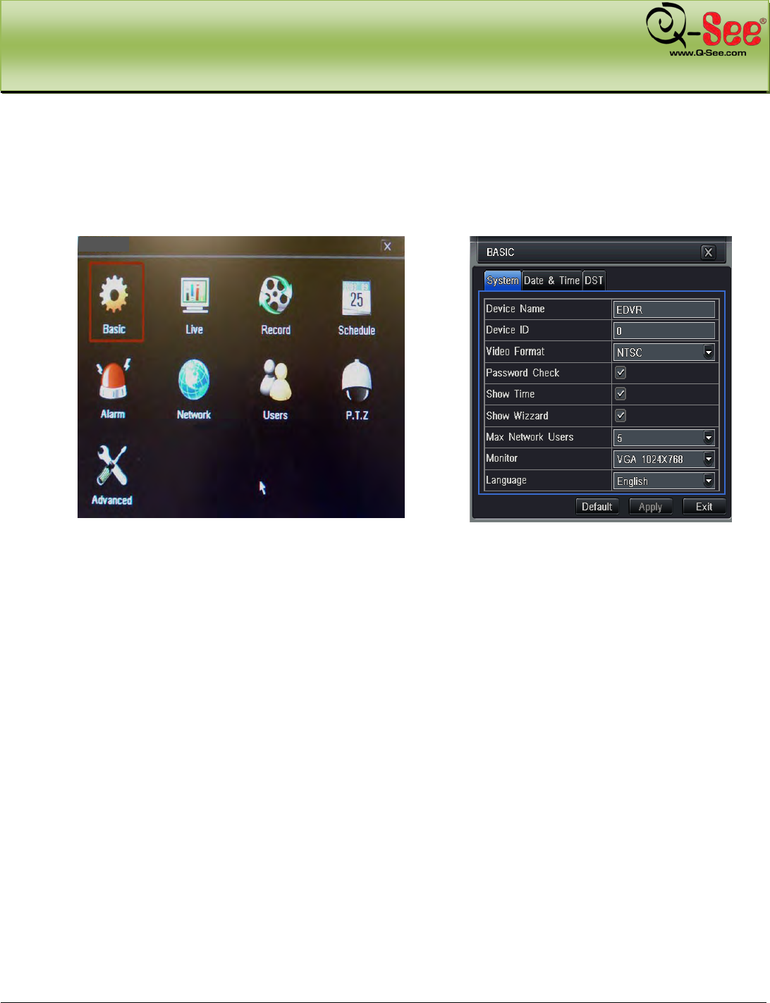 By default the DVR is setup to use a VGA monitor, if you want to use a TV instead then push the ESC button on