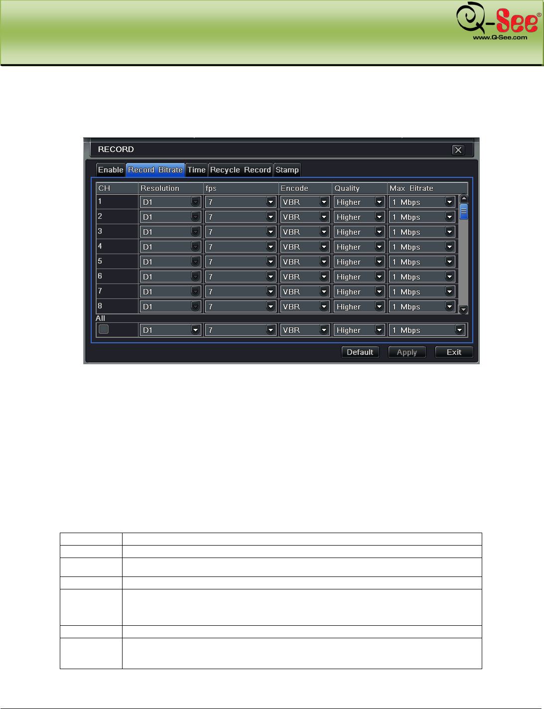 For instance, one customer uses NTSC cameras, set resolution to CIF, video quality to Lowest, frame rate to 30