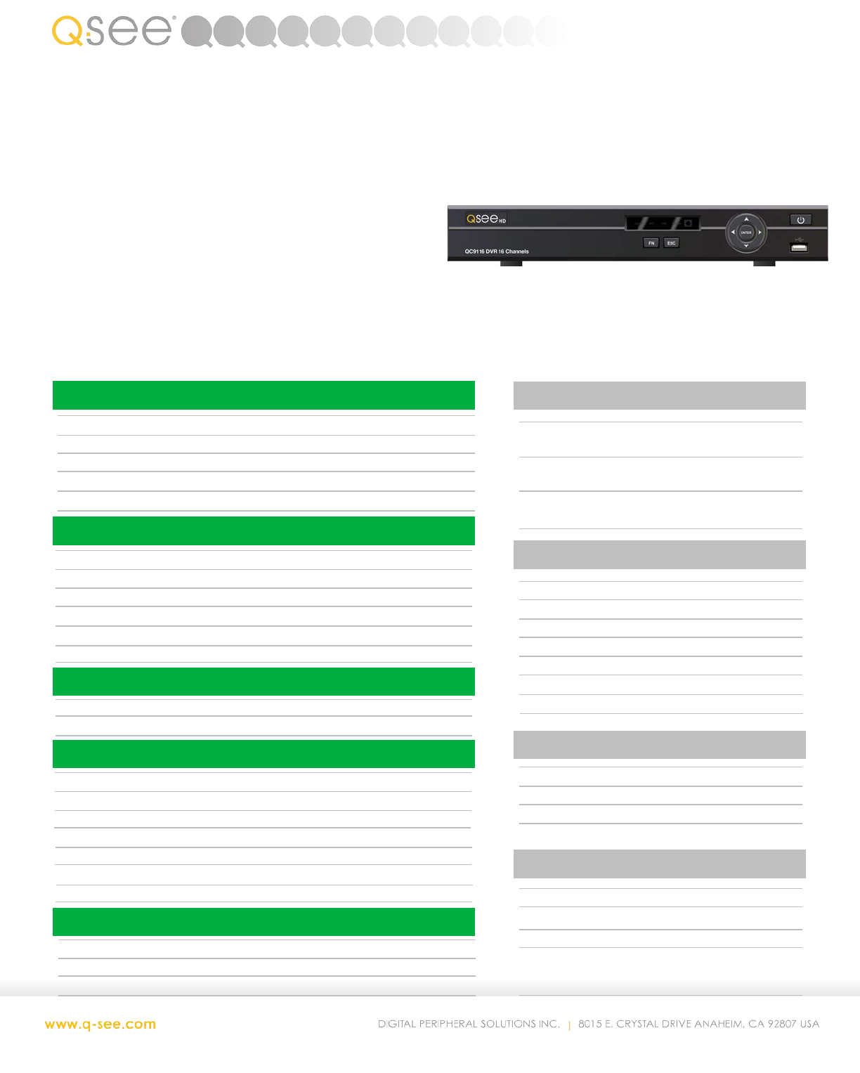 Recording Resolution 1080p / 720p / 960H / D1 / 2CIF / CIF