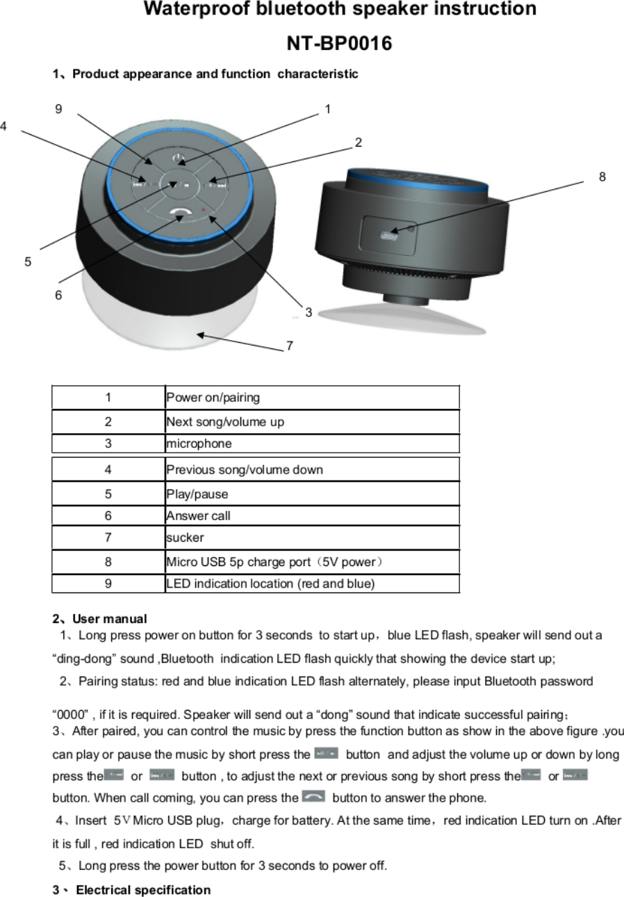 QI SHENGLONG IST QSLBP0016 Waterproof Bluetooth Speaker User Manual Manual