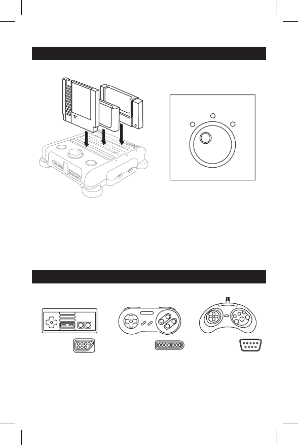 With the RetroN 3 turned OFF, insert the controller(s) into their corresponding slot (NES, SNES, or Genesis).