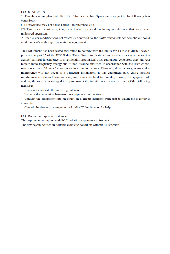 This device complies with part 15 of the FCC Rules. Operation is subject to the following two conditions: (1)