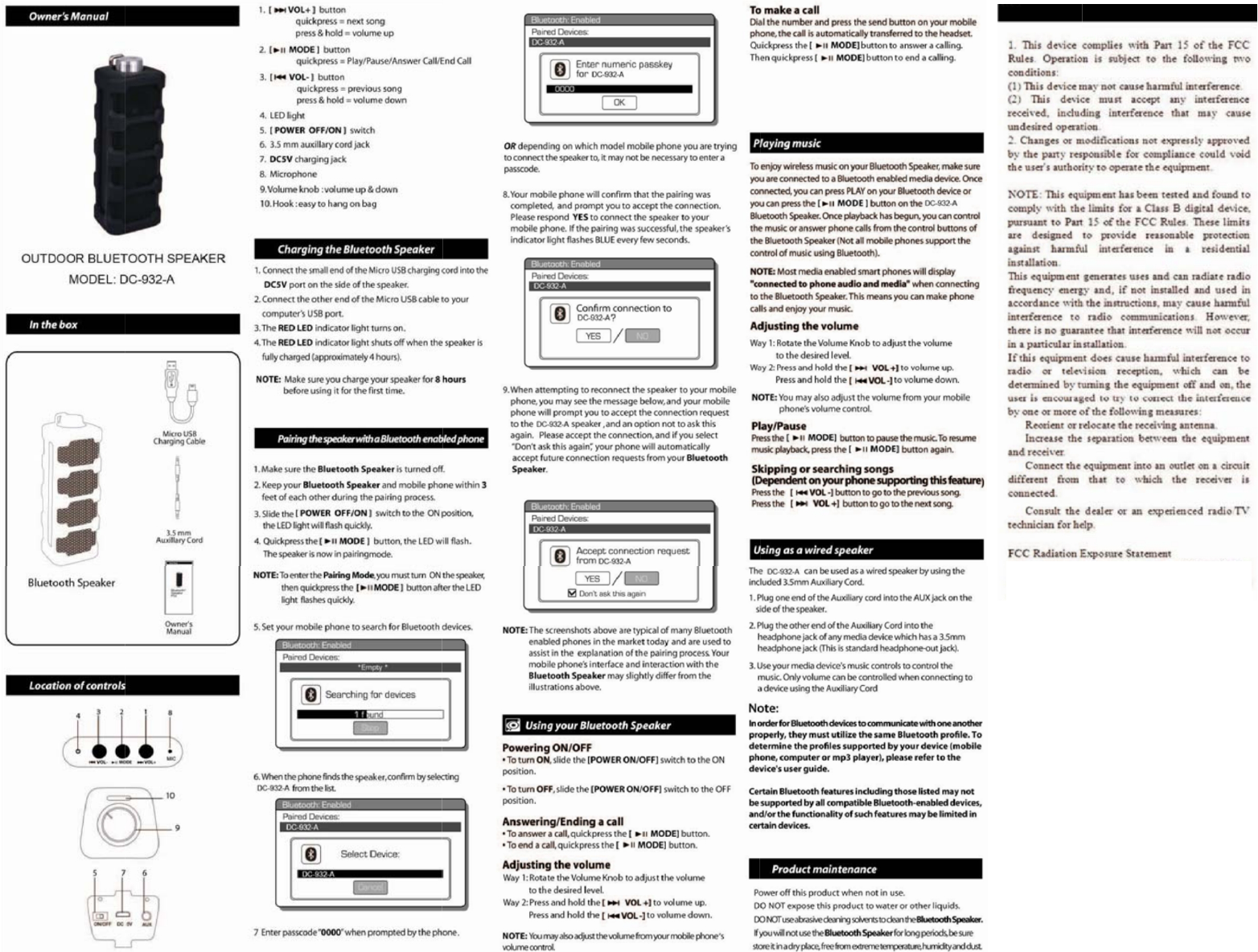 QI SHENGLONG IST QSLDC932A Outdoor Bluetooth Speaker User Manual Manual