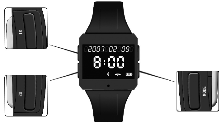 Press the “Mode” button and hold for 3 seconds to enter into time setting mode. Press S1 and S2