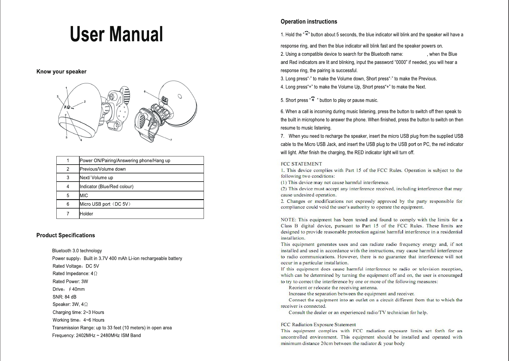 QI SHENGLONG IST QSLMA861 Bicycle Bluetooth Speaker User Manual MA 861 005