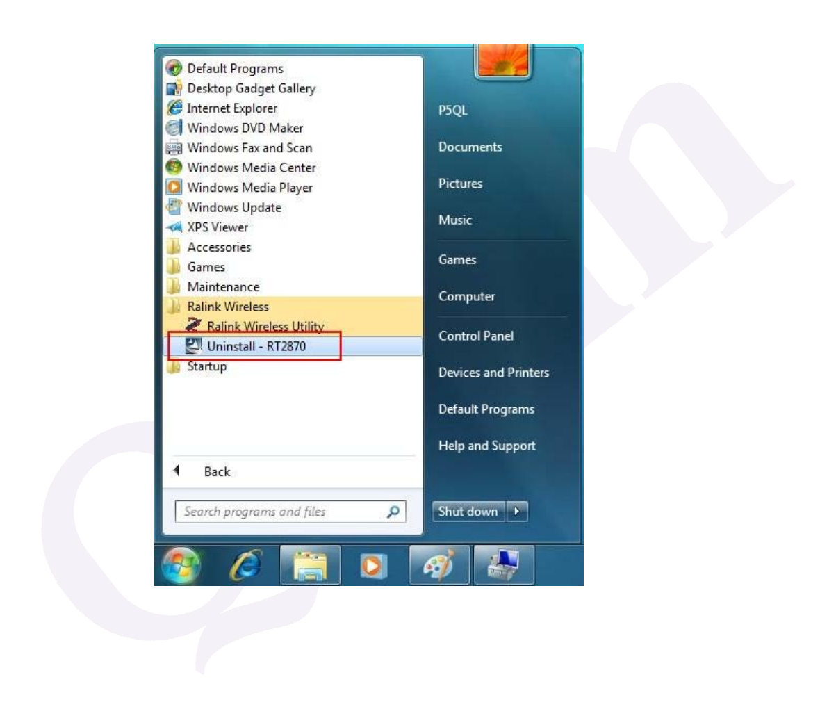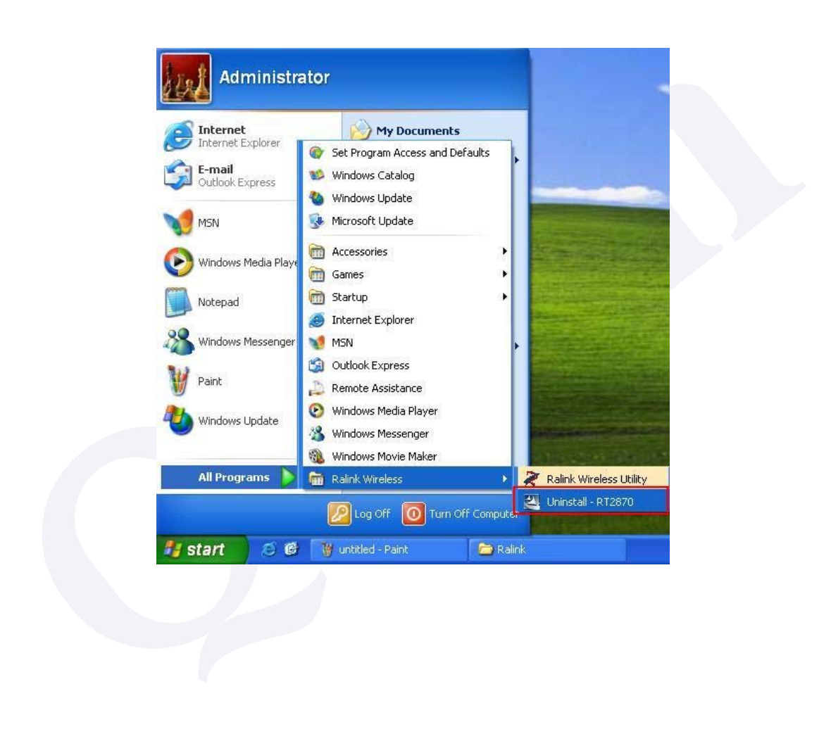 Ralink Wireless under Windows environment. Then click "Uninstall –