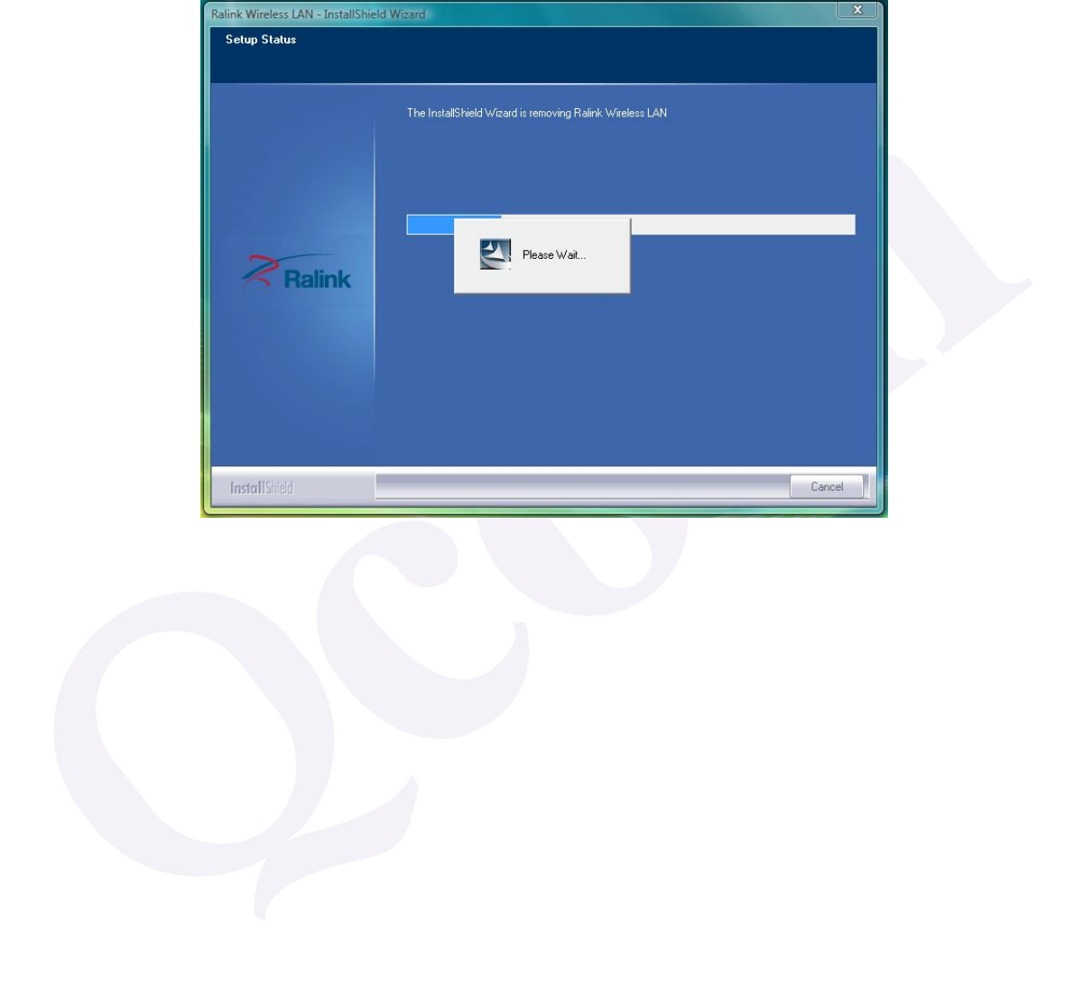 5. After completing the uninstallation, the Ralink Wireless LAN – Installshield
