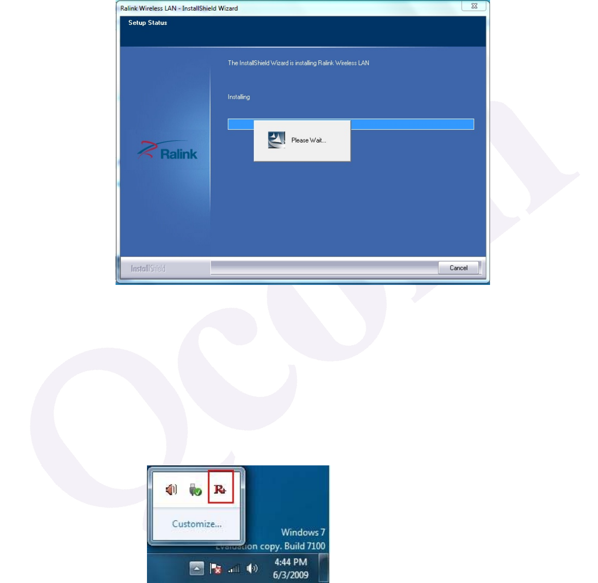 4. When the Ralink Wireless LAN – Installshield Winzard screen disappears, the
