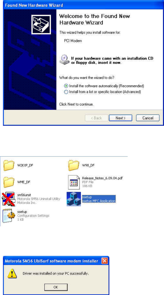 4. Wait for a minute, after the Motorola SM56 UbiSurf software modem installer