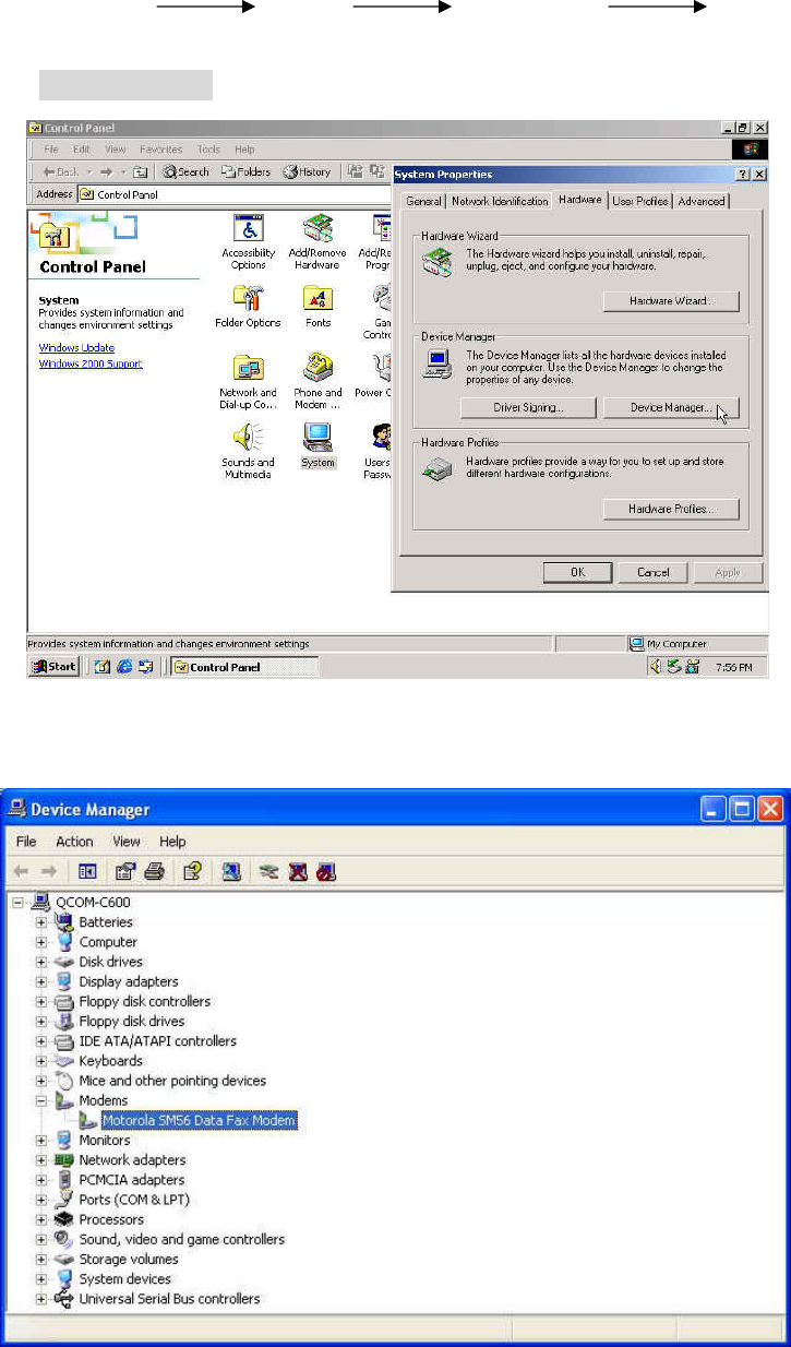 • Install Motorola SM56 Data Fax Modem driver using the Installation CD.