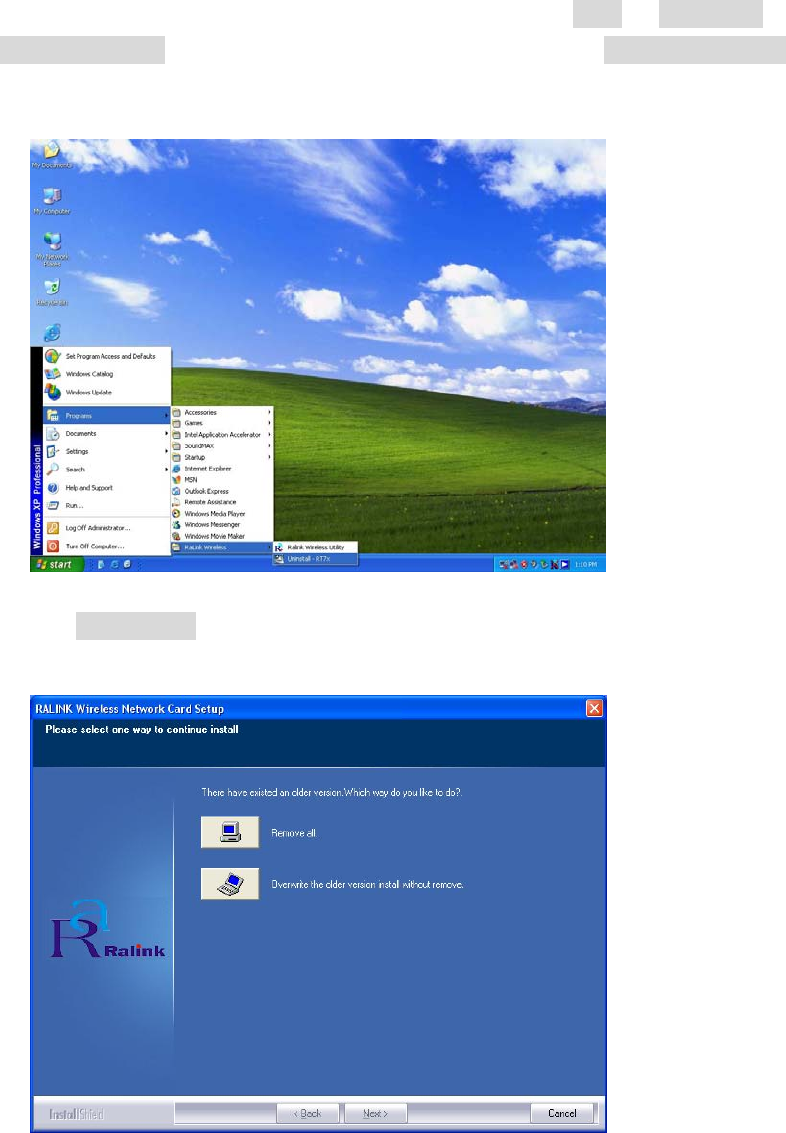 Ralink Wireless under Windows environment. Then click Uninstall – RT7x.