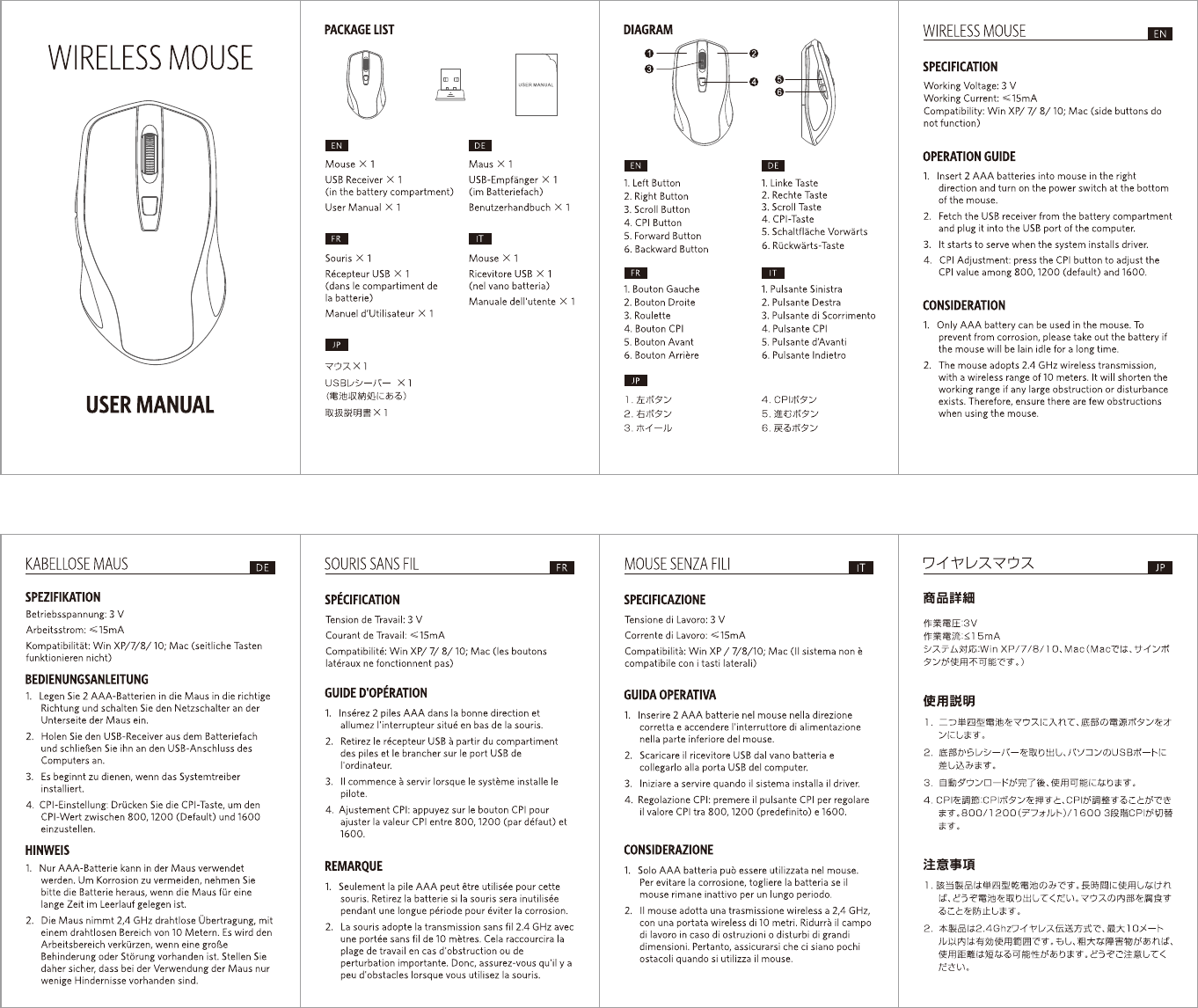 Qianhai Patuoxun Network and Technology PC157A Wireless Optical Mouse User Manual