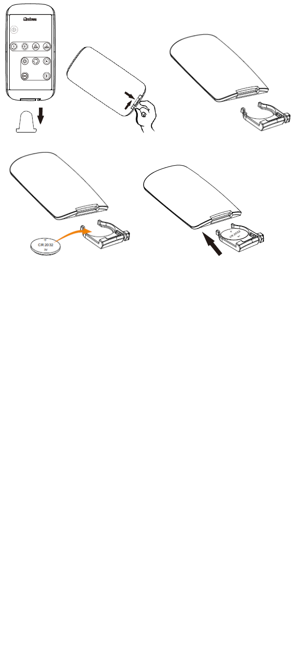 5, Please use CR2032 cell battery if the remote’s power runs out.