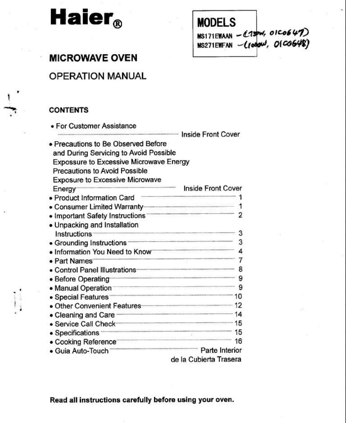 Qingdao Haier Microwave Production Co., Ltd. Microwave Oven users manual