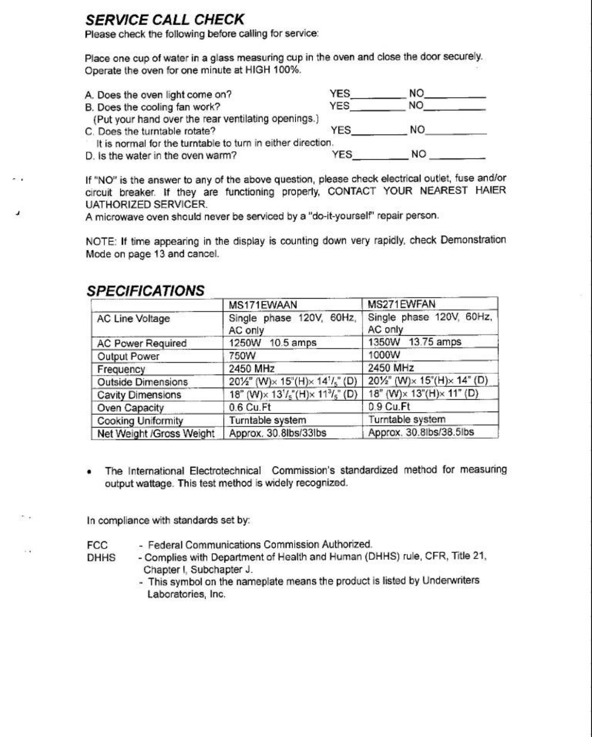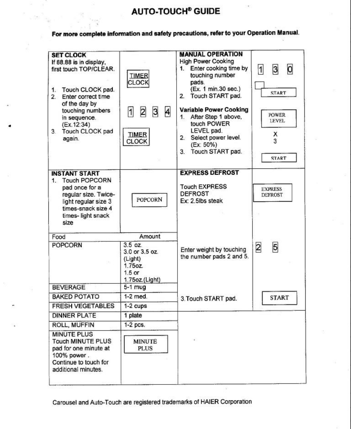 Qingdao Haier Microwave Production XZHM091000W Microwave Oven User Manual