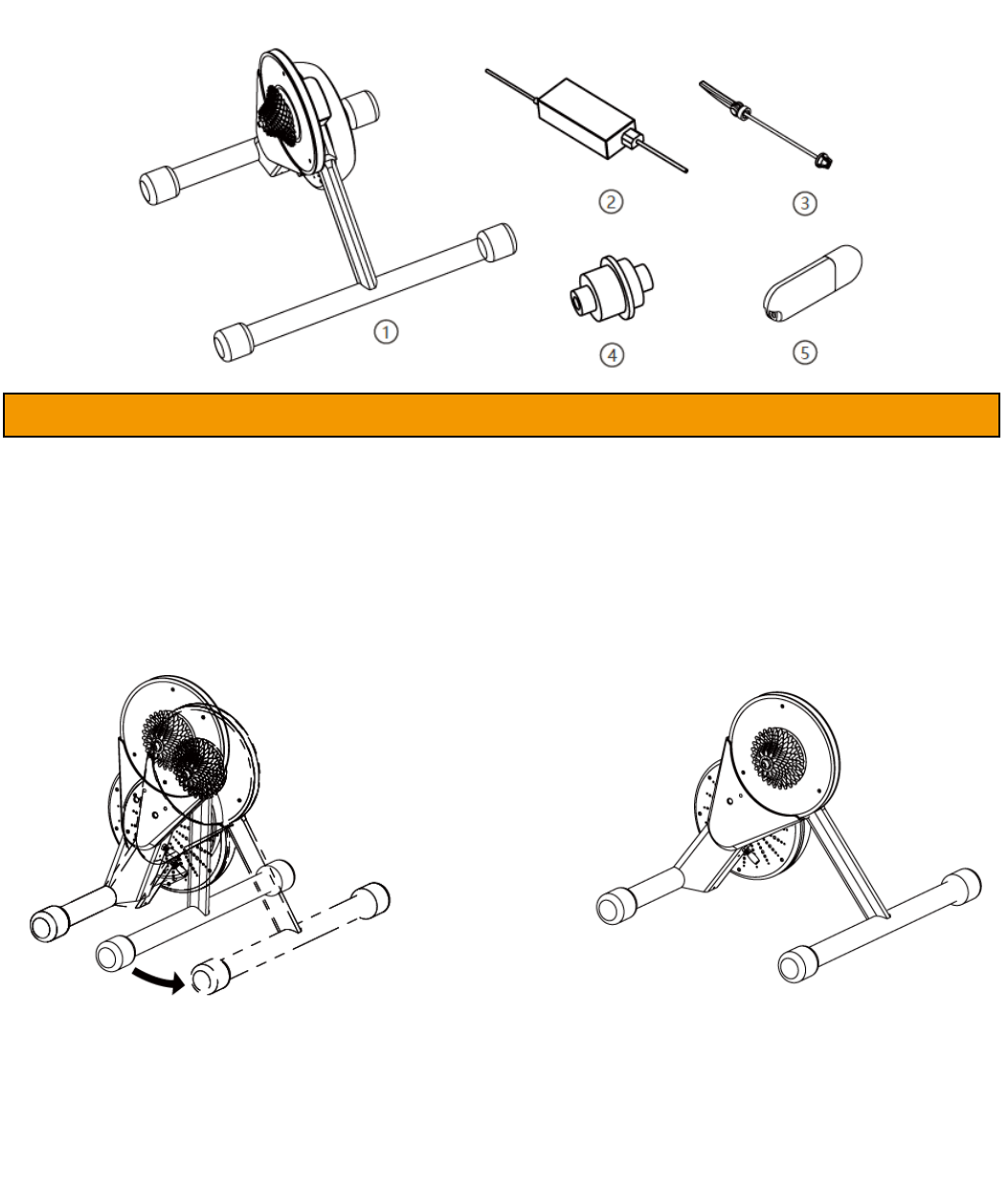 In the box you will find your (1) GRAVAT Smart Power Trainer, (2) AC adapter, (3) quick release skewer, (4)