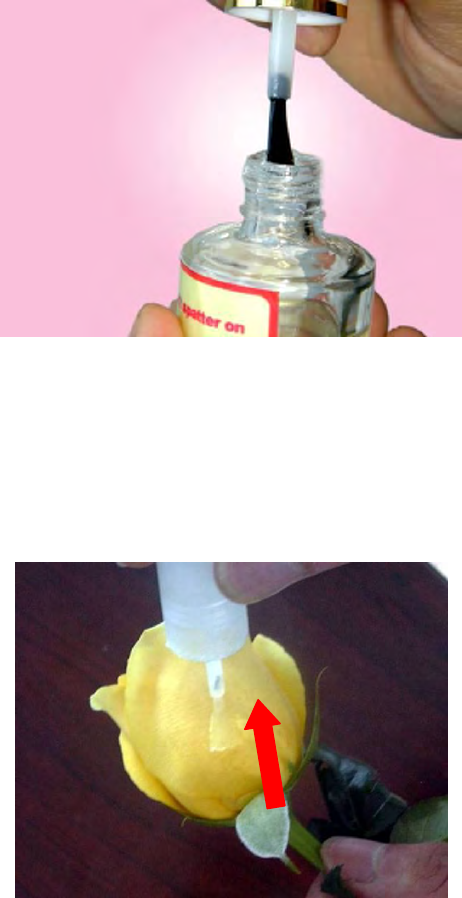 Brush on the petal gently and along the same direction.