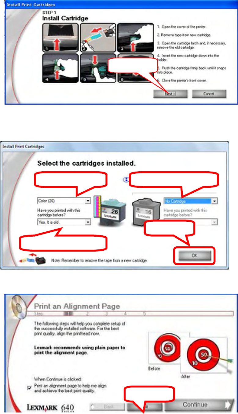 5. Set the left cartridge as “Color [26]”, “No, it is new”, set the right cartridge as “No cartridge”,