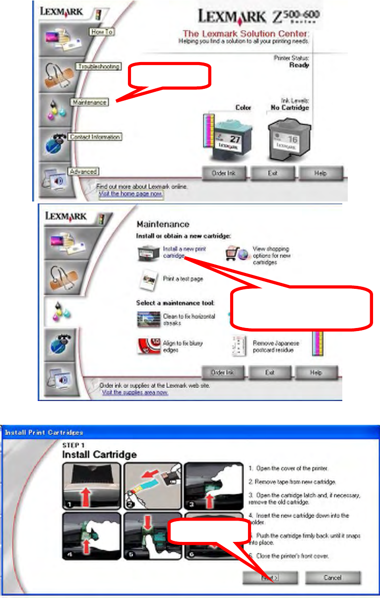 c) Click “Install or obtain a new cartridge”