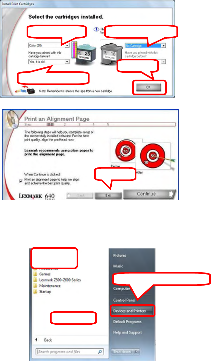 f) Set the left cartridge as “Color [26]”, “No, it is new”, set the right cartridge as “No cartridge”,