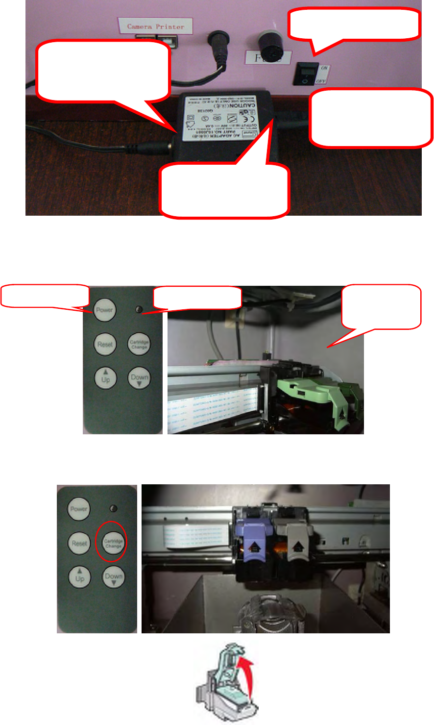 Open the new cartridge and put in the cartridge plate. (Please check “install ink cartridge” under