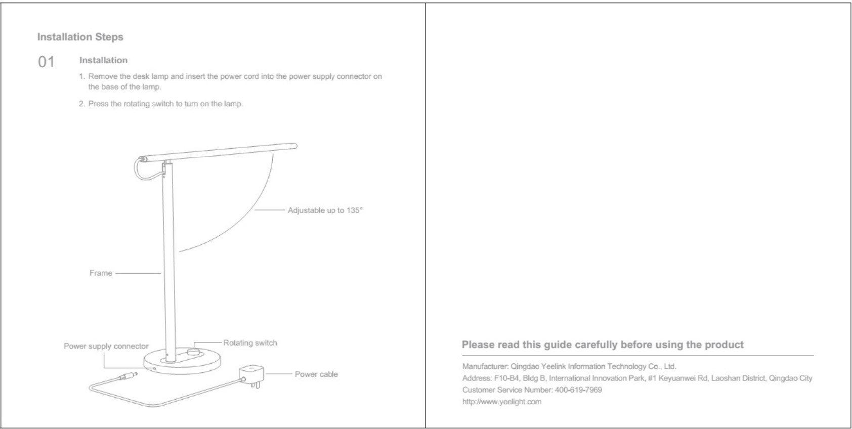 Qingdao Yeelink Information Technology MJTD01YL MIJIA LED Desk Lamp User Manual C8ABD2B3B4ABD5E6CDBCC6AC