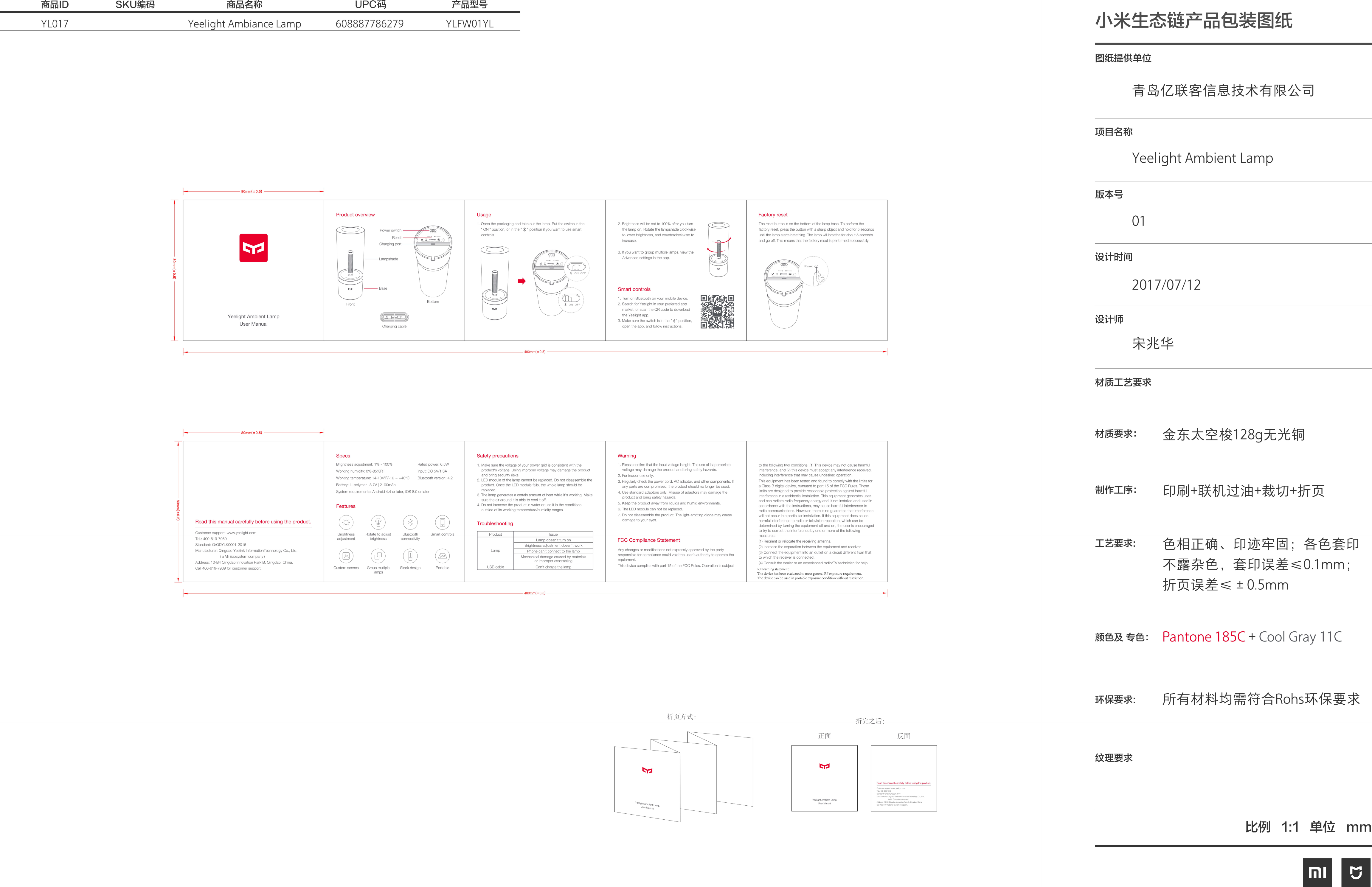 Qingdao Yeelink Information Technology Co., Ltd. YEELIGHT Ambiance Lamp