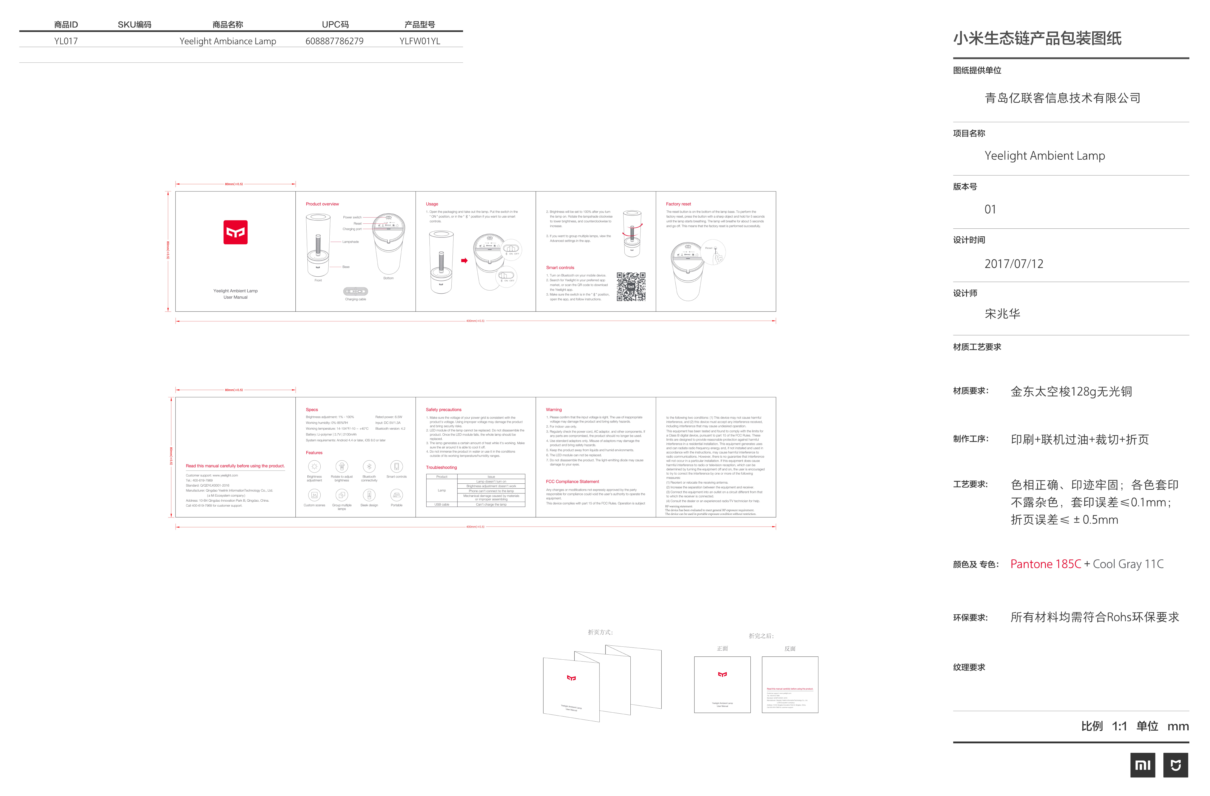 Qingdao Yeelink Information Technology YLFW01YL YEELIGHT Ambiance Lamp User Manual