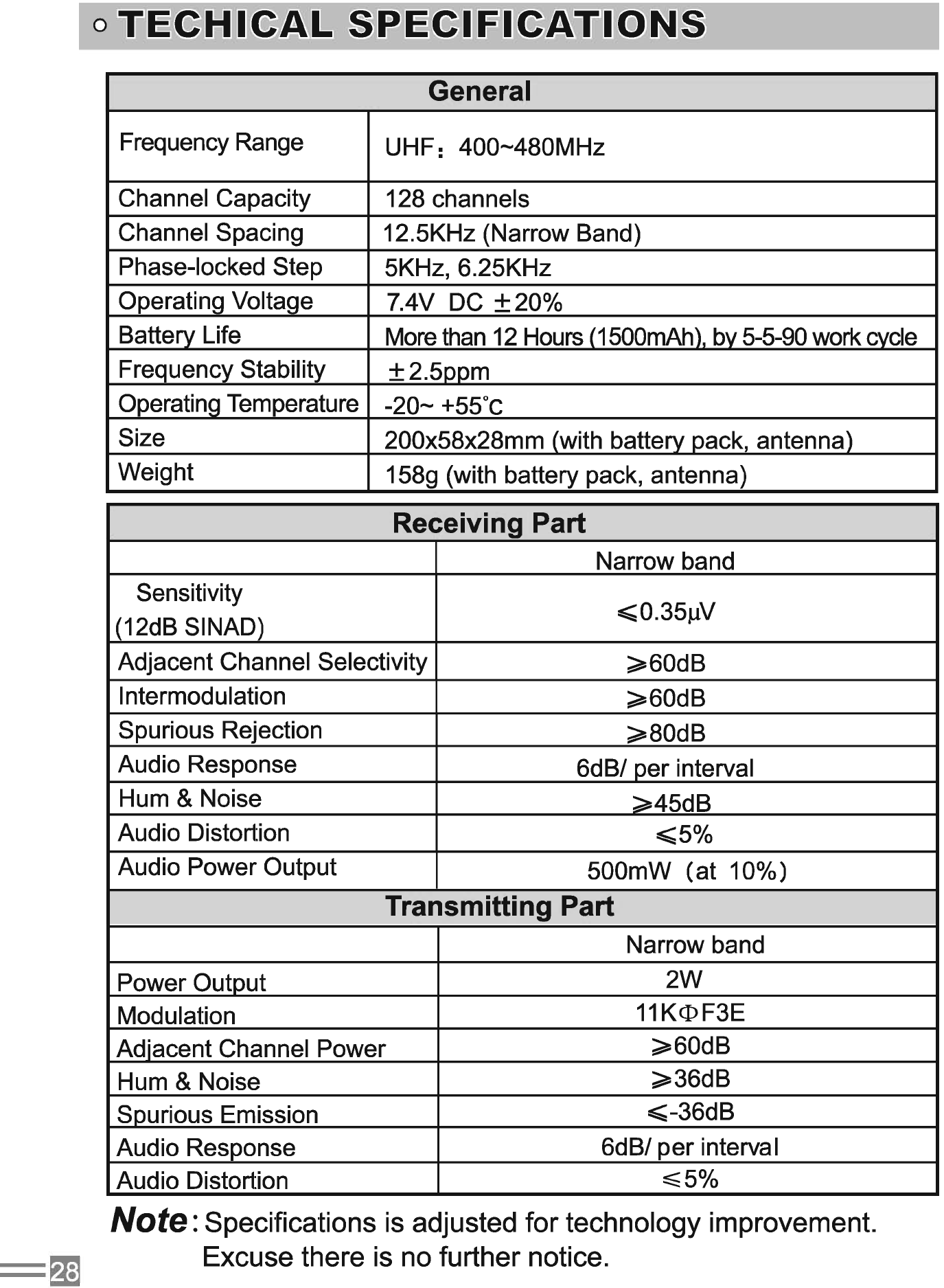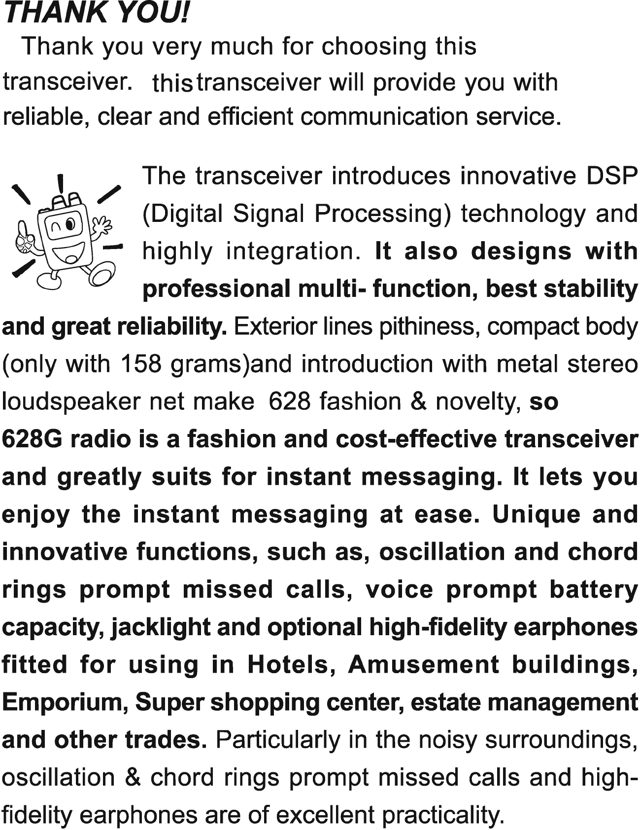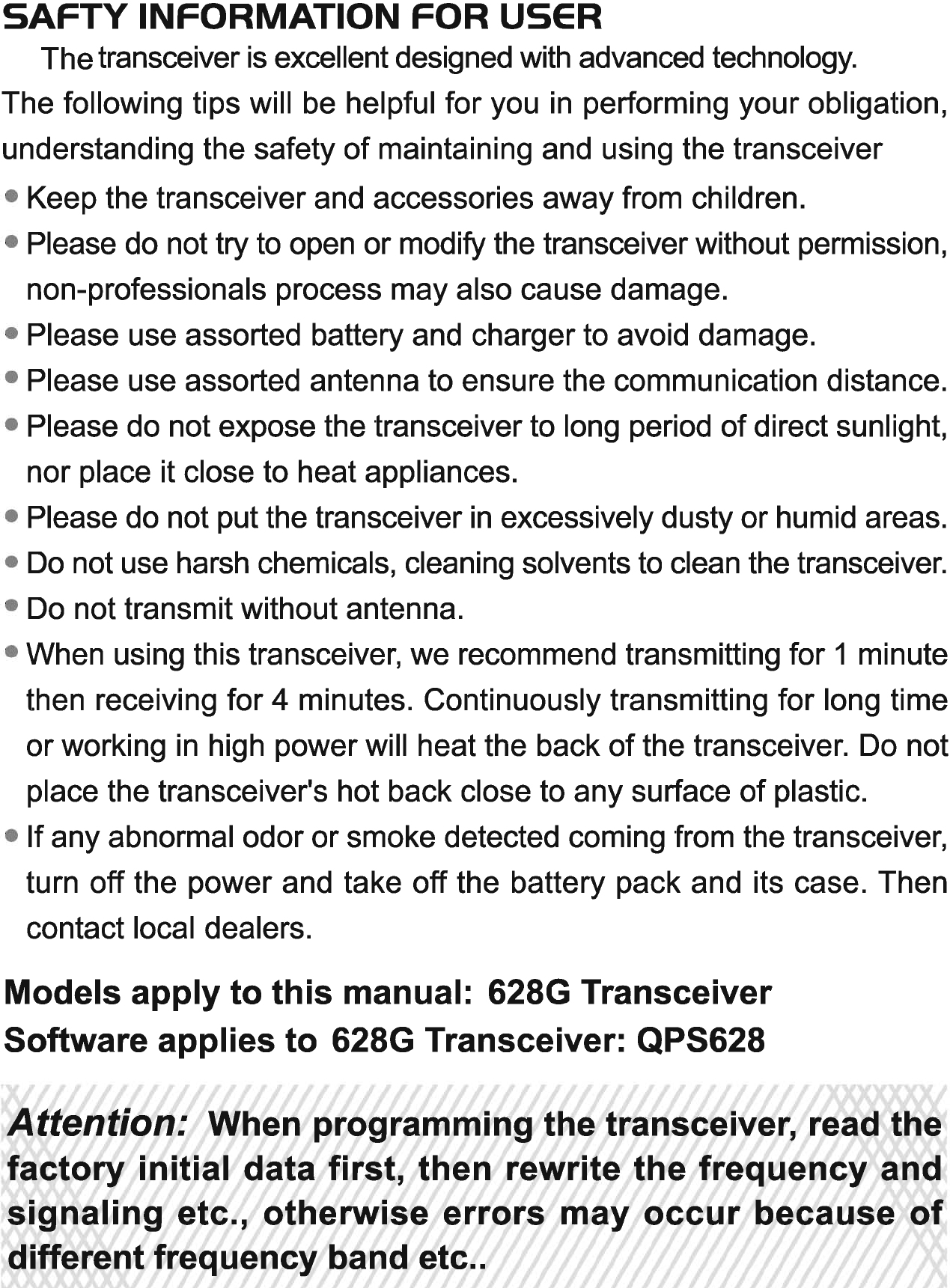 Qixiang Electron Science and Technology QZQX628G Two Way Radio User Manual