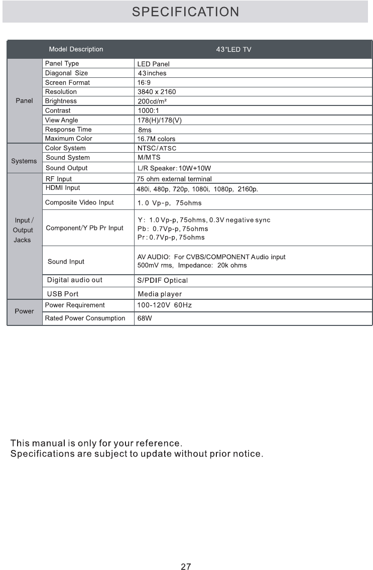 Qiyue Optronics RNSMU4336A 43 inches SMART 4K UHD TV User Manual 1