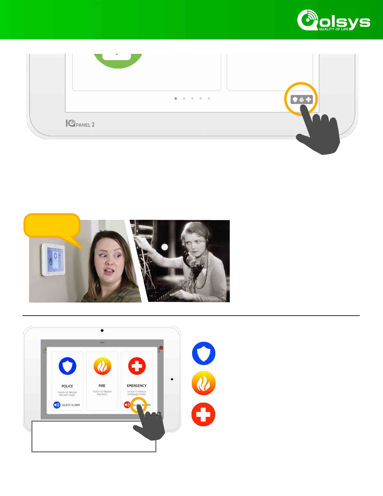 send a manual emergency panic by touching the icon in the bottom right corner and selecting the type of emergency you are