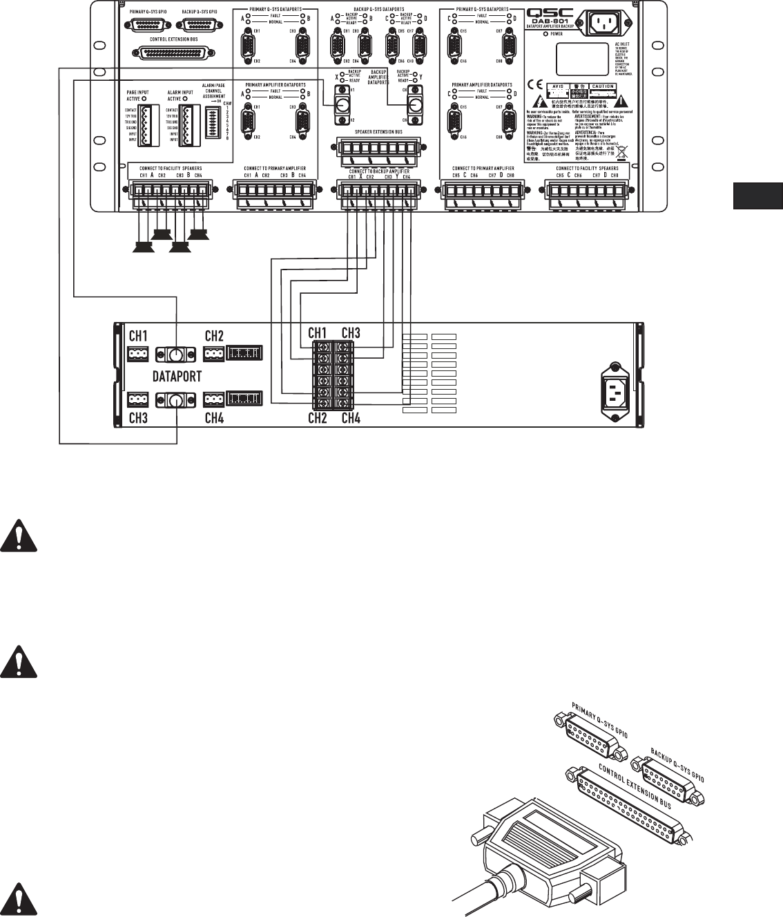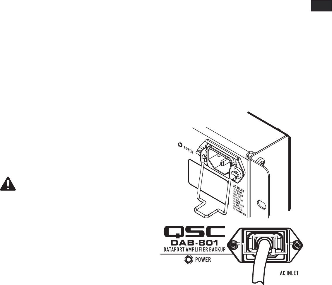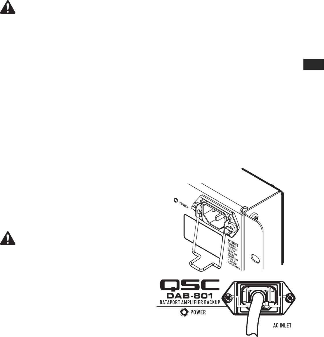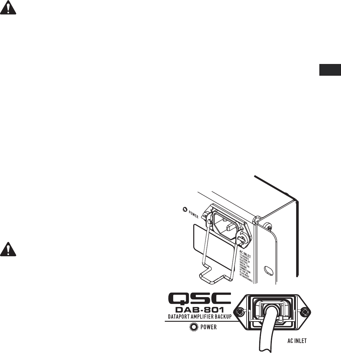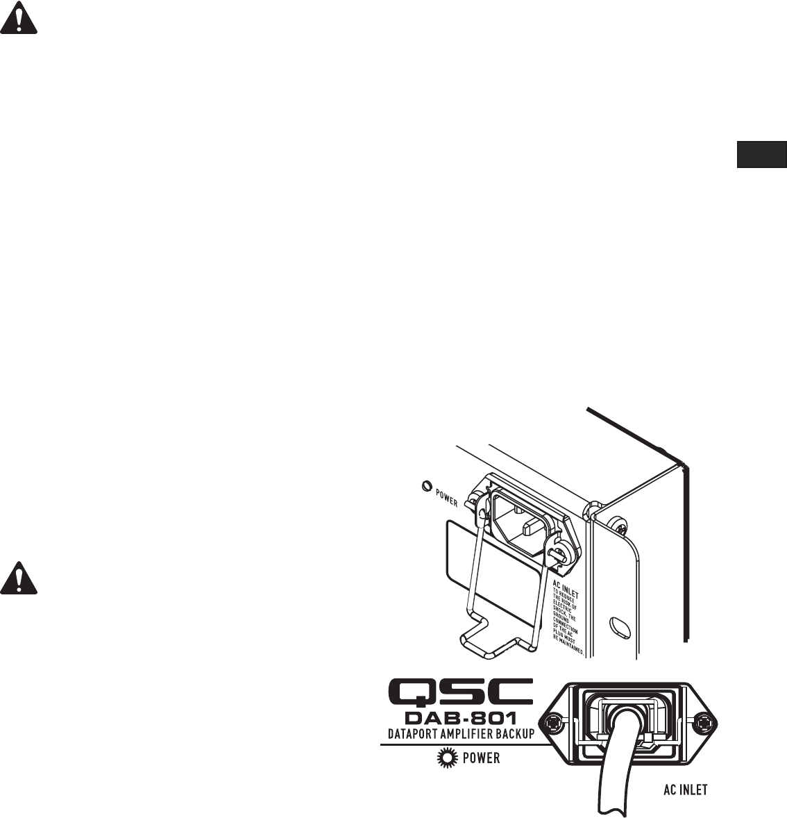 operates on 100-240VAC, 50/60Hz. By using QSC standard HD-15 DataPort connectors and high current detachable terminal blocks, the DAB-801