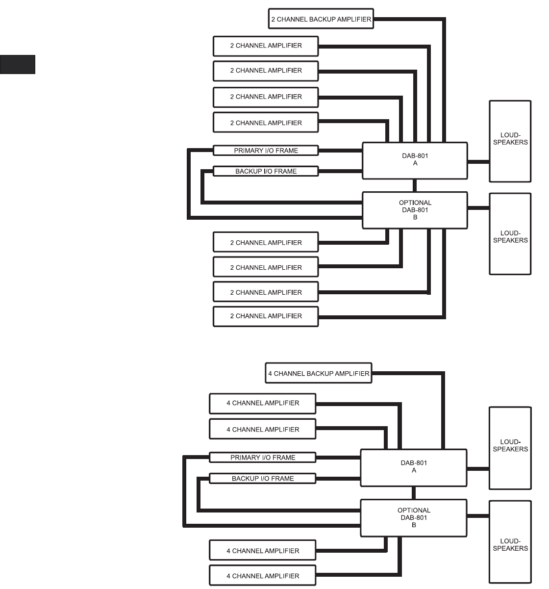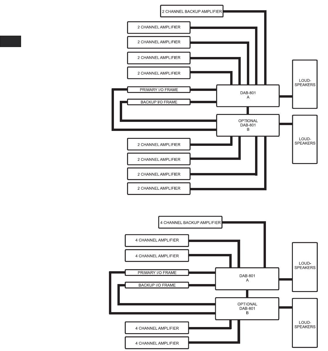 of the DAB-801. Two paging modes are available for high priority paging and are activated with either a standard contact closure or +12VDC trigger