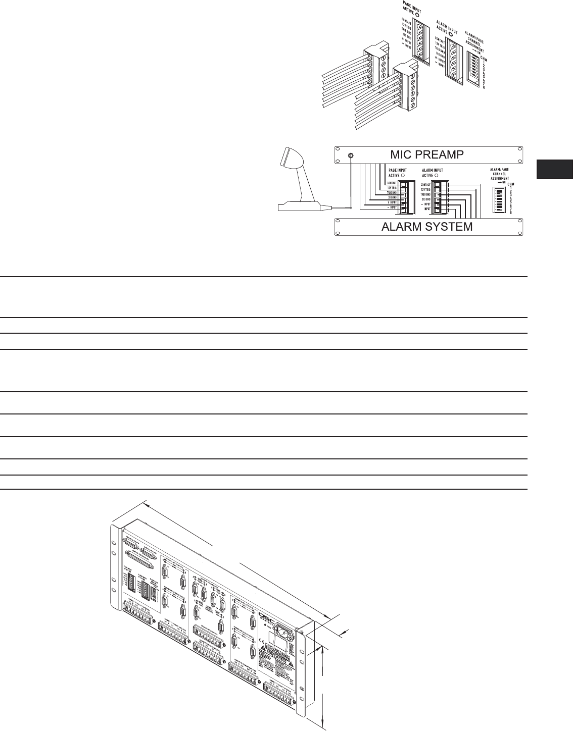 分页/警报输入 平衡输入,5000 欧姆,3 Vrms。
