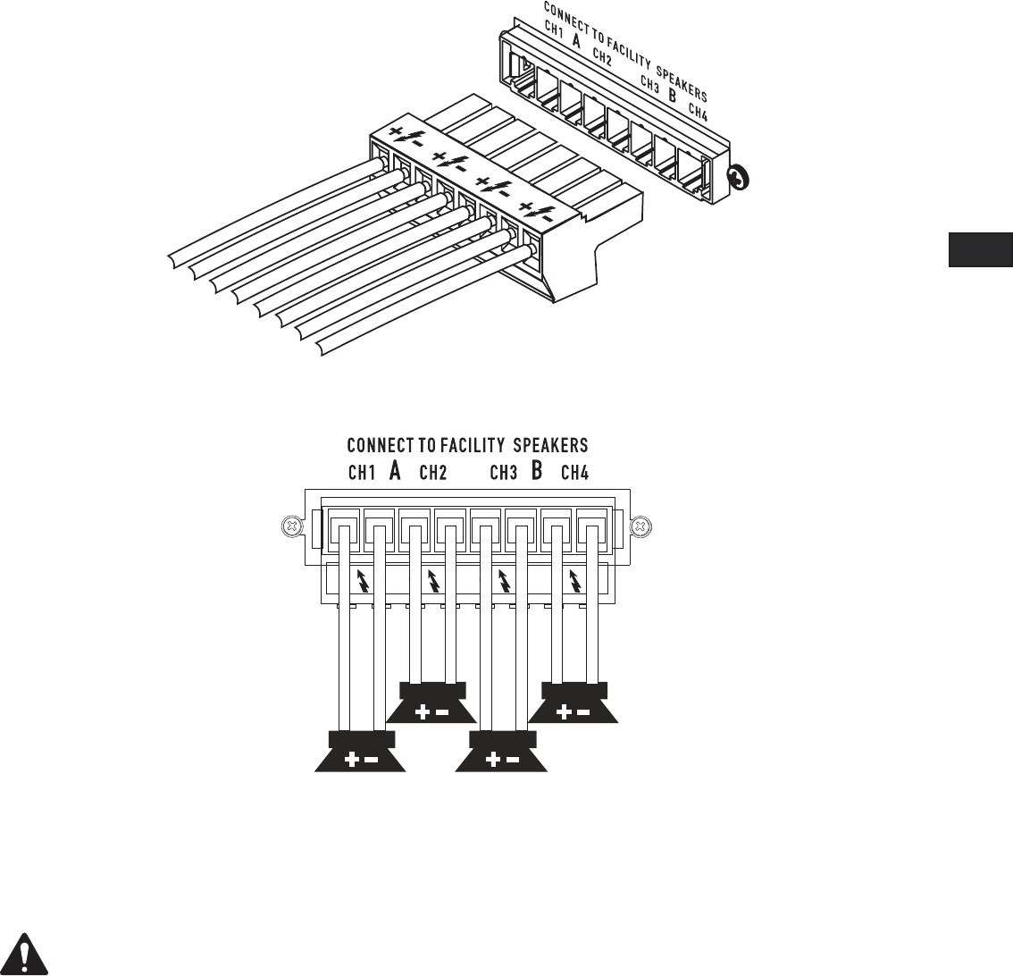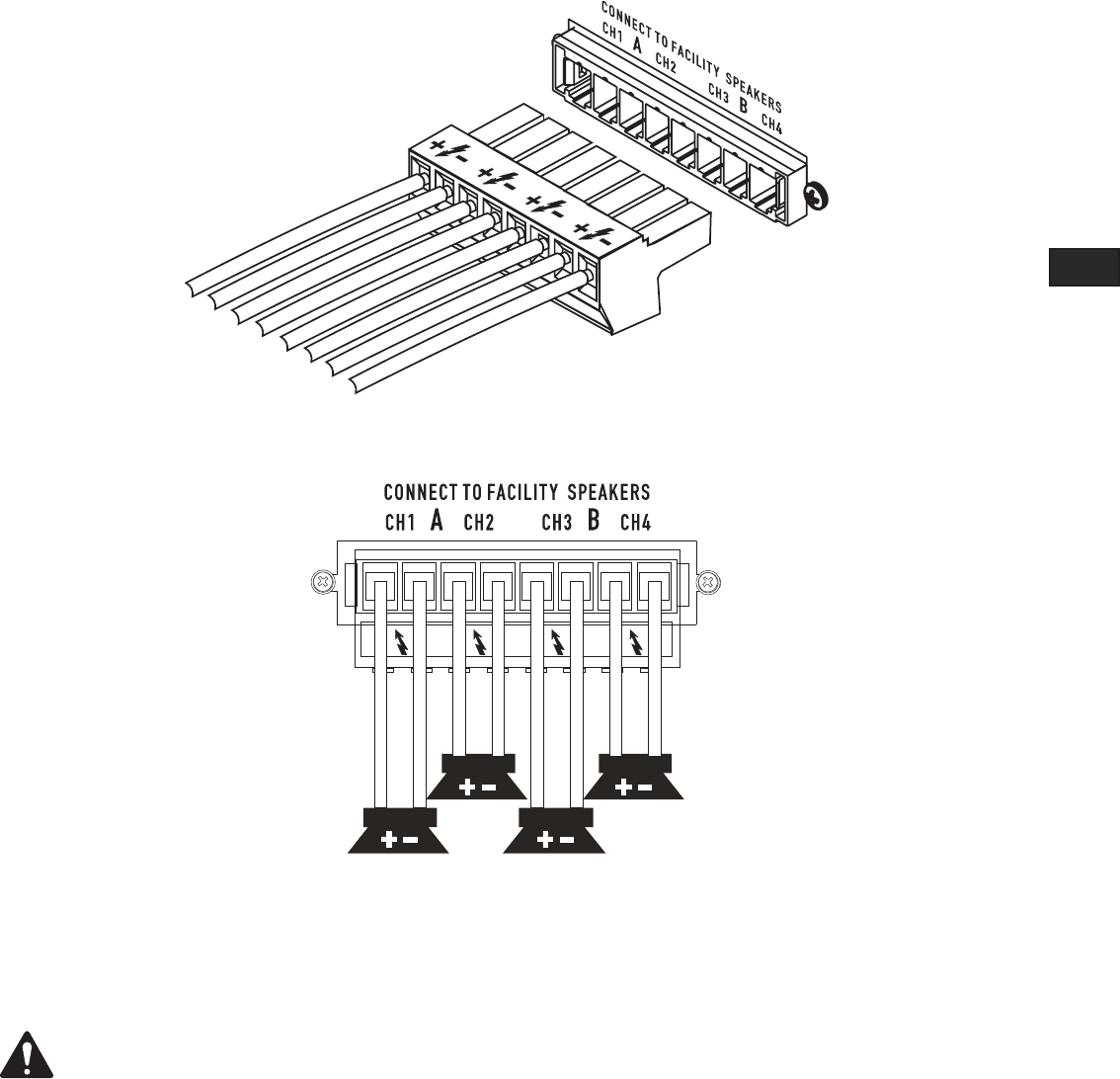 应该将扩展 DAB-801 上标有“Speaker Extension Bus”(扬声器扩展总线)字样的可拔插端子板连接到主 DAB-801 上标有“Speaker