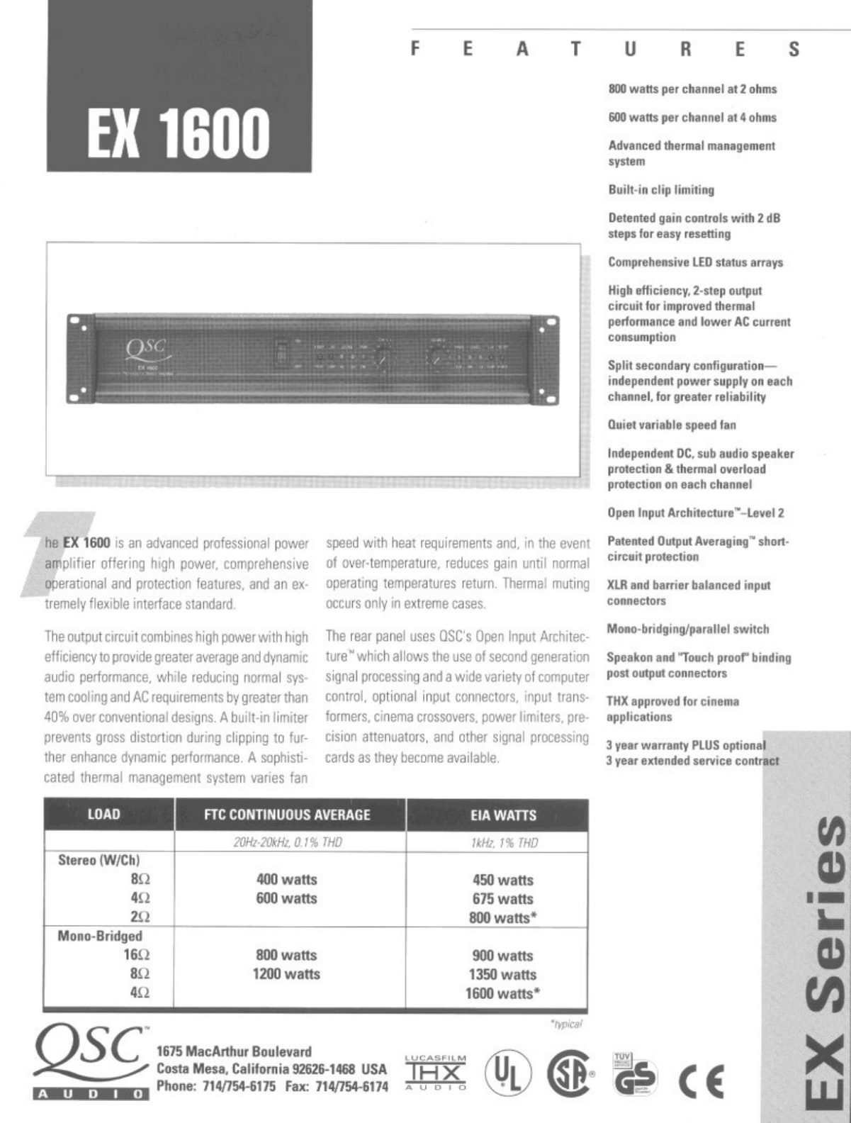 Qsc Professional Power Amplifier Ex 1600 Users Manual EX1600