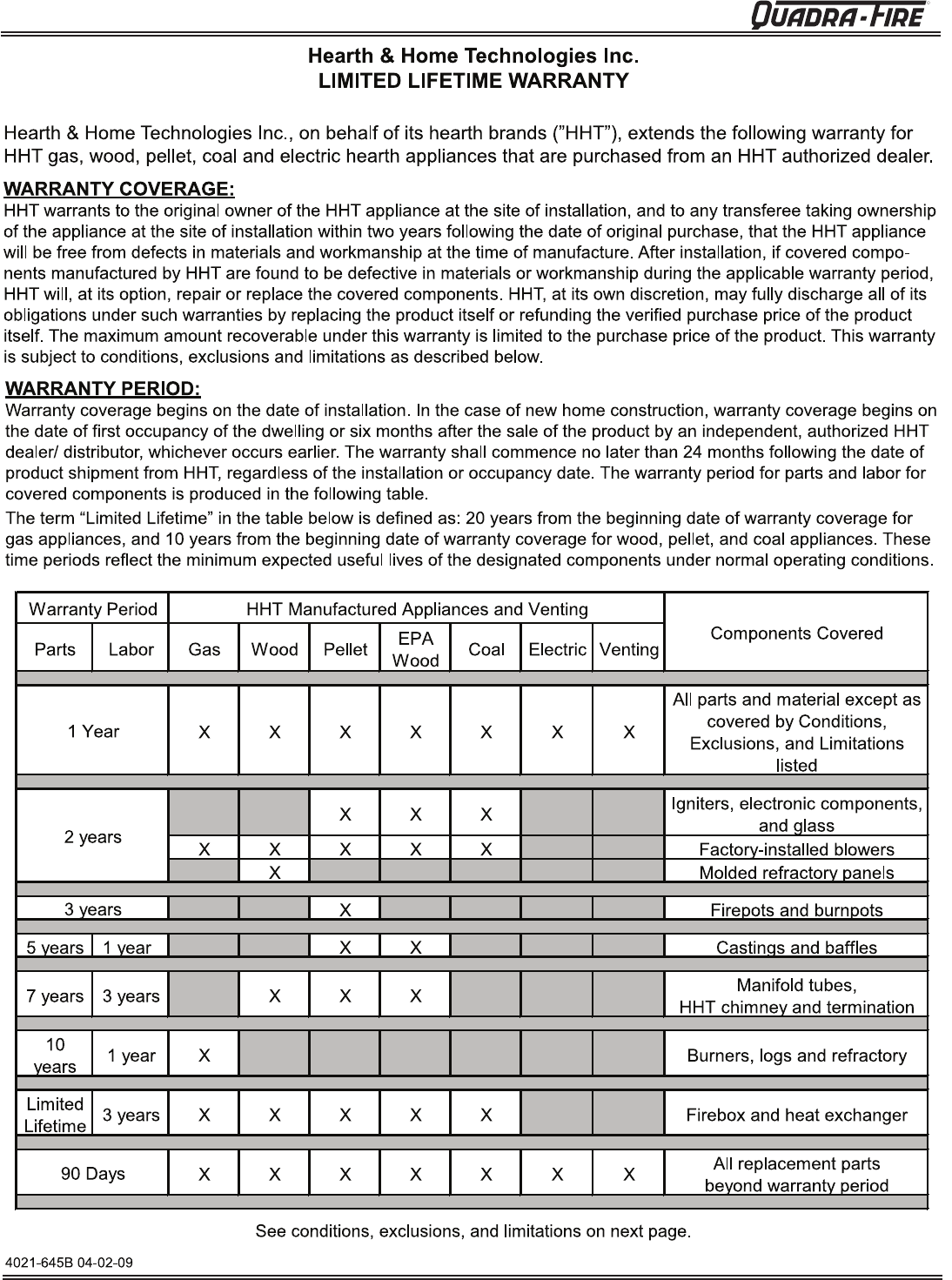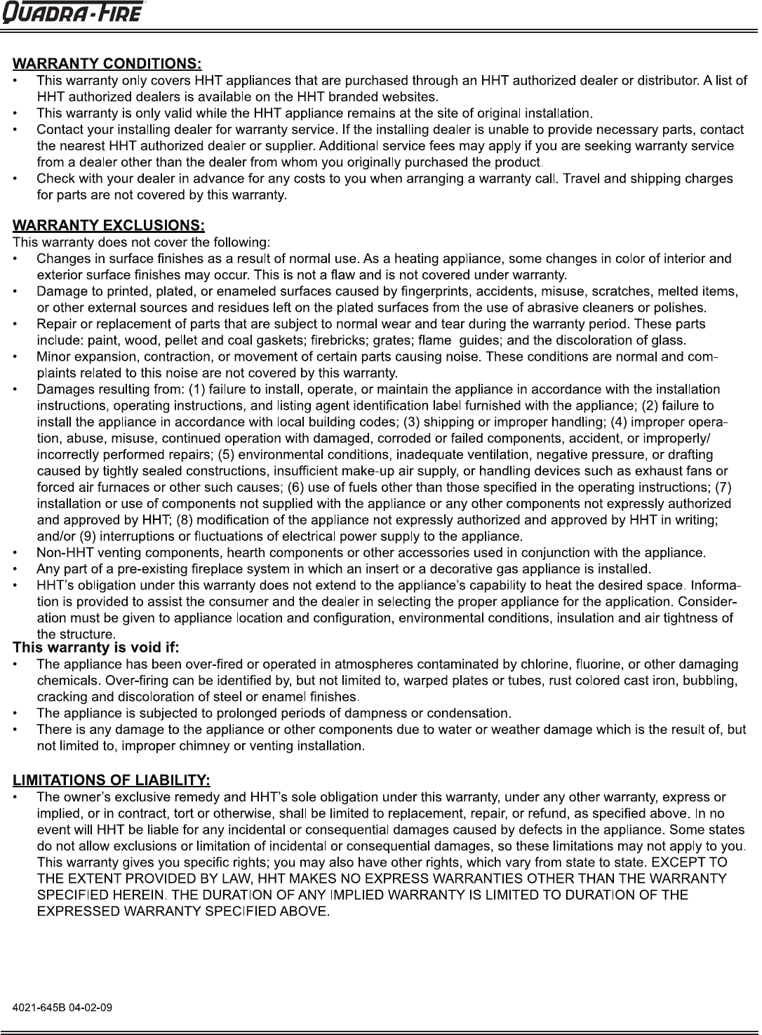 Please contact your Quadra-Fire dealer with any questions or concerns.