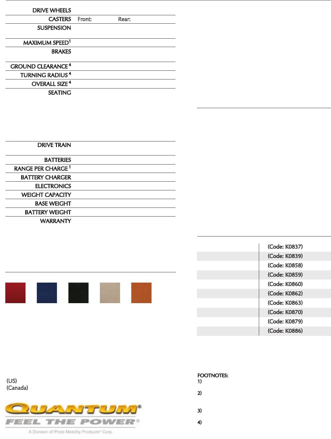 1) Range and speed vary with user weight, terrain type,