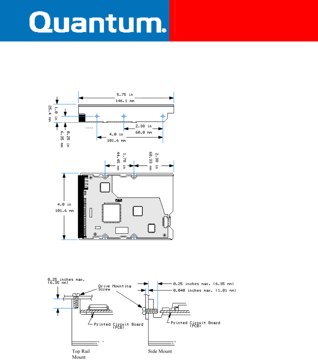 The mounting holes on Quantum 3.5-inch form factor hard disk drives allow the drive to be mounted in any