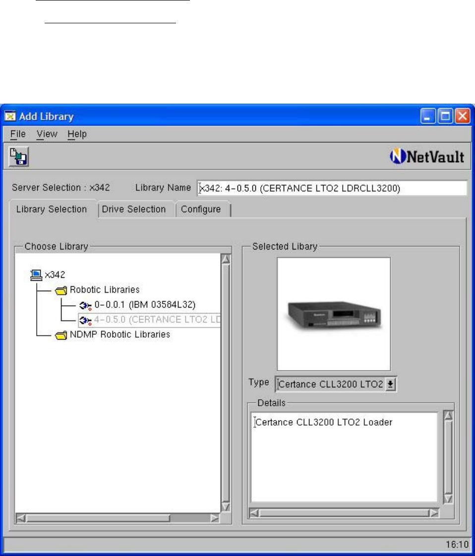9 Select Server machine and open it to view attached Robotic Libraries in “Library Selection” tab.