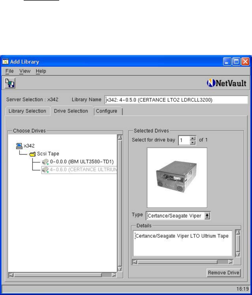 9 Select the Drive Selection tab. Select Server machine and open it to view the attached SCSI