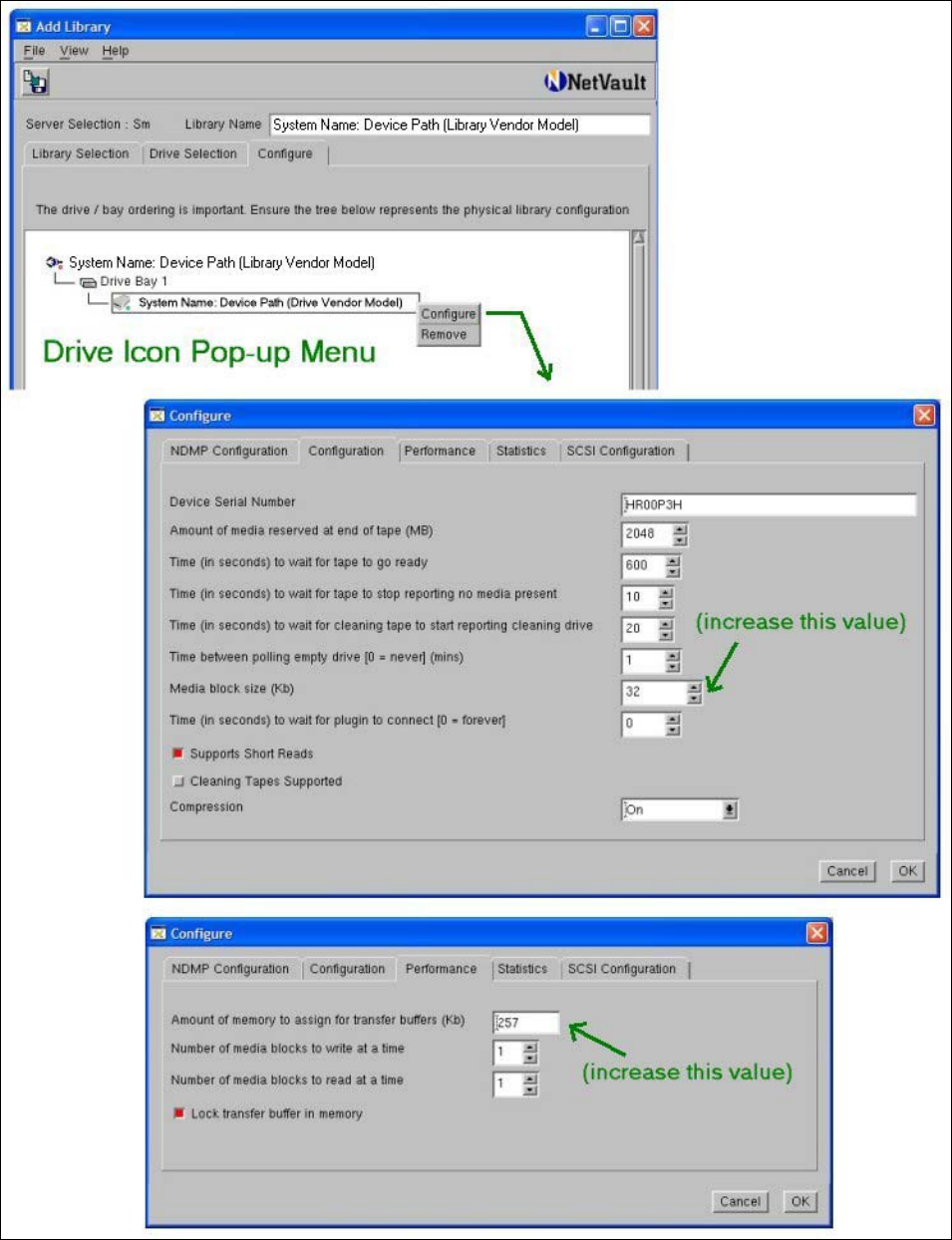9 Click the Configuration tab in the dialog box and increase the Media block size (Kb)