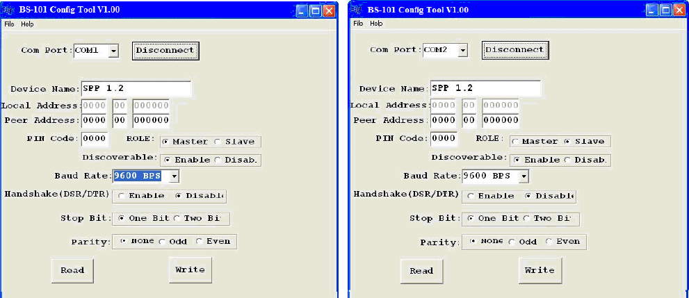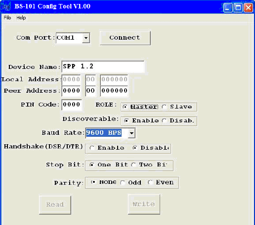 After double click the icon of BT1 as “BT RS232 Config Tool”, the