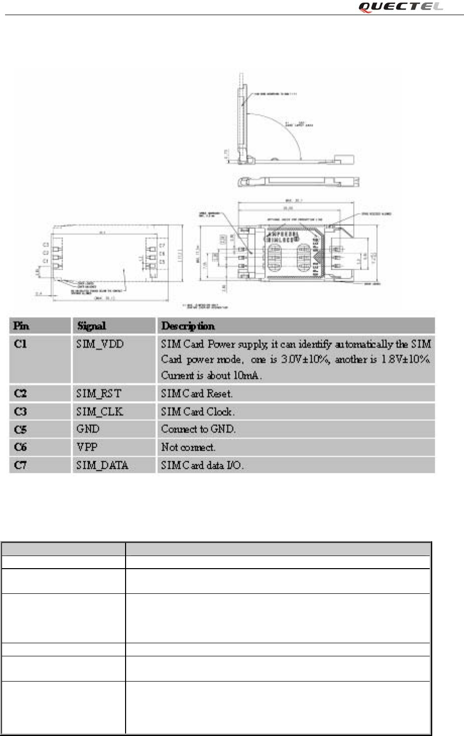 The mechanical architecture of SIM card holder and the definition of SIM card are shown below: