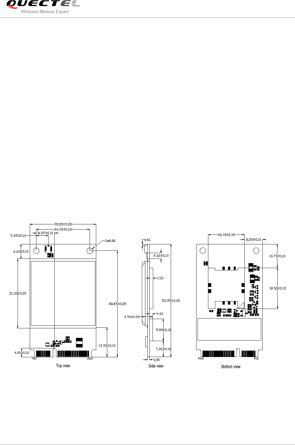 This chapter mainly describes the following dimensions of UC15 Mini PCIe: