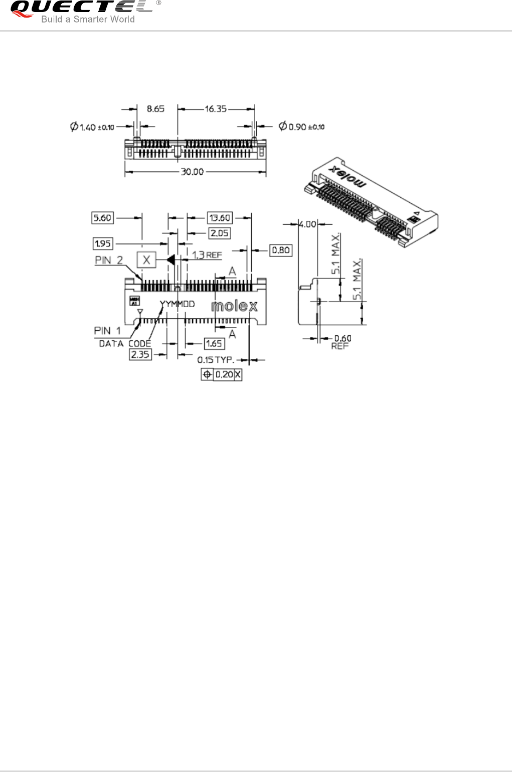 Figure 17: Dimensions of the Mini PCI Express Connector (Molex 679100002, Unit: mm)