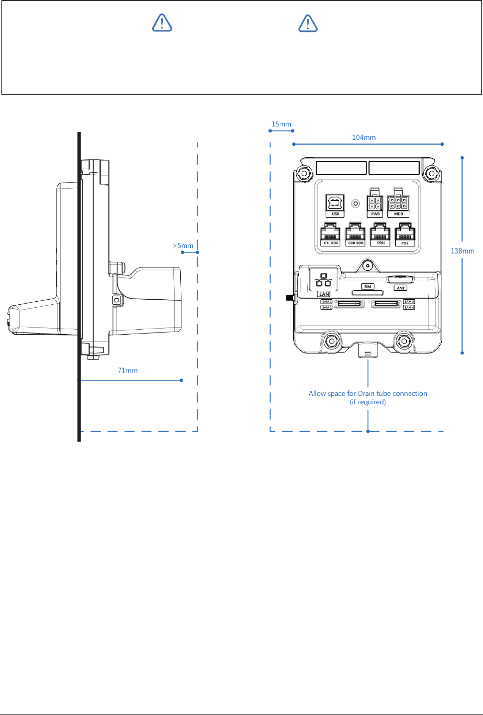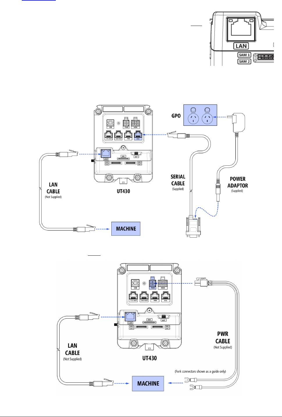 Note: If UT430 is connected via Ethernet, a clearance greater than 20mm may be required